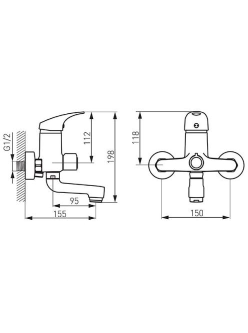 Ferro ONE fali kádtöltő csaptelep zuhanycsatlakozóval, króm