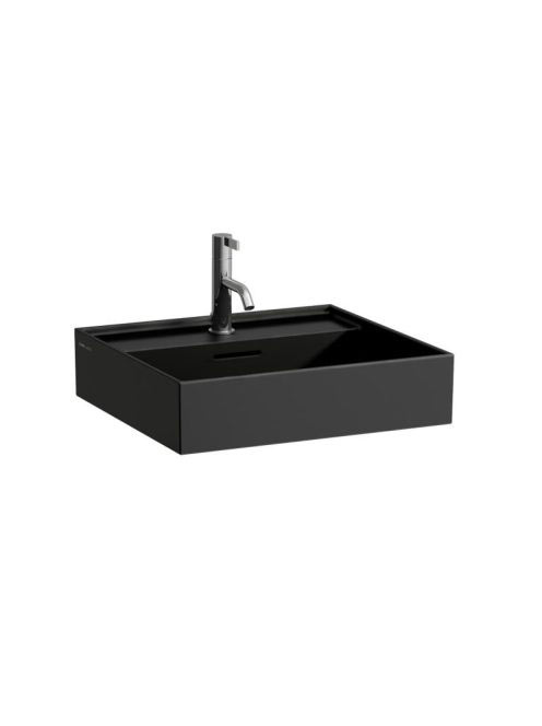 Laufen Kartell by Laufen mosdó csiszolt alsó felülettel 50x46 cm, matt fekete H8163327161041 Méret: 500x460x145 mm Súly: 12, 4 kg Űrtartalom: 7 liter Anyag: SaphirKeramik Telepítés: bútorra ültethető, falra Egy csapfurattal ellátva Túlfolyóval Csiszolt alsó felület Szín: matt feketeA csaptelep és a M10x140 mm rögzítőszett nem tartozék, külön kell megrendelni. A szabadalmaztatott és a piacon elérhető SaphirKeramik a LAUFEN egyik legújabb, globálisan jelentős innovációja. Ez a forradalmi kerámia anyag kivételes keménységét a zafírok egyik alkotóeleme, a korund színtelen ásványával keverve éri el. Ez a SaphirKeramik acéléval megegyező hajlítószilárdságot biztosít. Egyszerre kemény és alakítható, a SaphirKeramik nagyon vékony, de nagyon erős, mindössze 3-5 mm-es falakkal,  valamint szűken meghatározott, mindössze 1-2 mm-es sugarú darabok készítését teszi lehetővé.