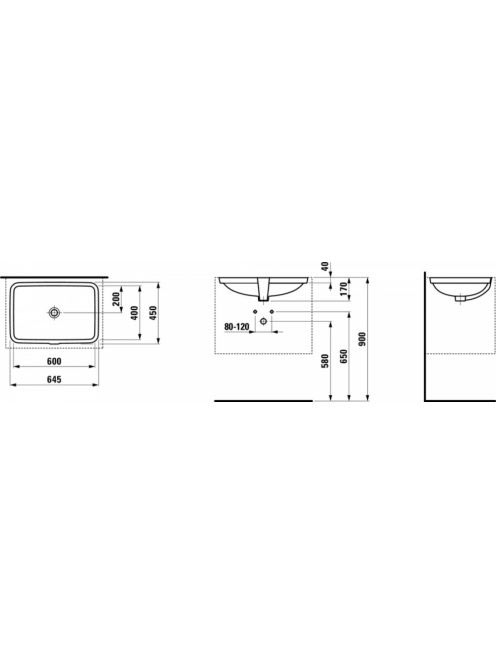 Laufen Pro S alulról beépíthető mosdó 60 x 40 cm csaplyuk né