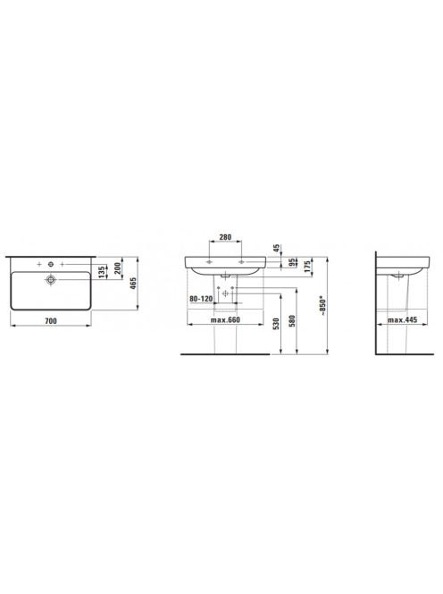 Laufen Pro S mosdó 70x46.5 cm, 3 csaplyukkal H8109670001081