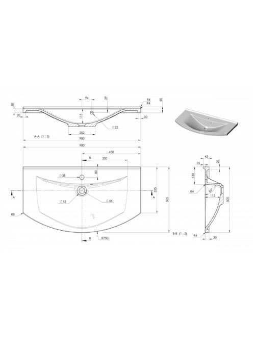 Sapho Aras öntöttmárvány mosdó 90x50,5 cm, fehér 90911 - Für