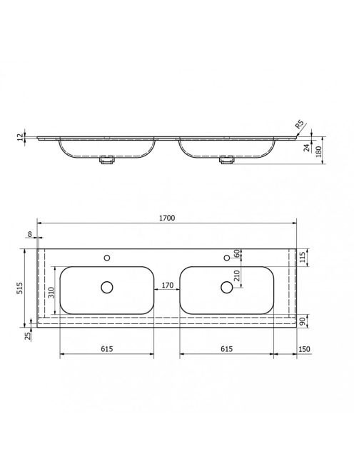 Sapho Aruba Rockstone beépíthető duplamosdó 170x51,5 cm matt