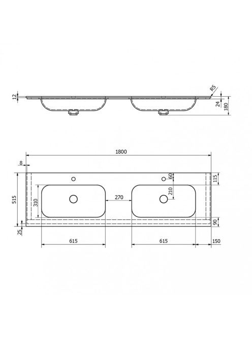 Sapho Aruba Rockstone beépíthető duplamosdó 180x51,5 cm matt