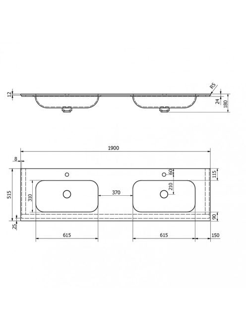 Sapho Aruba Rockstone beépíthető duplamosdó 190x51,5 cm matt
