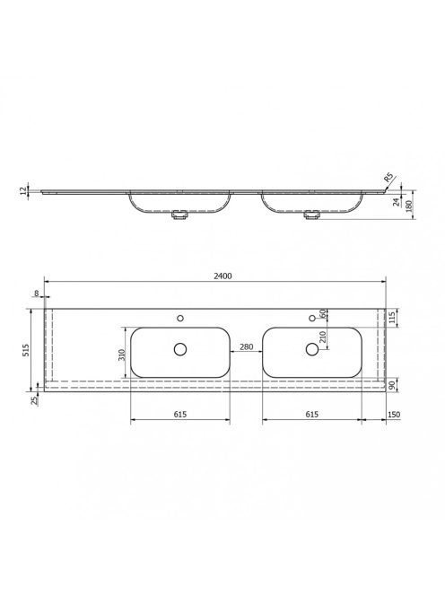 Sapho Aruba Rockstone beépíthető duplamosdó 240x51,5 cm jobb