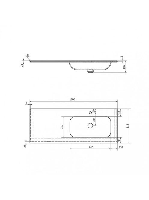 Sapho Aruba Rockstone beépíthető mosdó 130x51,5 cm jobbos AR