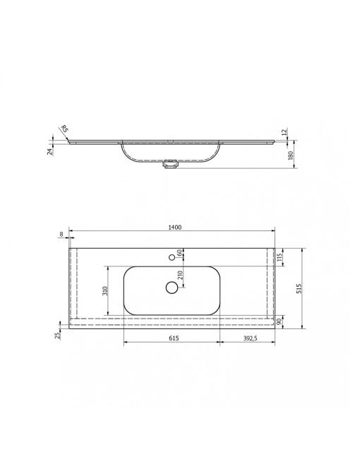 Sapho ARUBA Rockstone beépíthető mosdó 140x51,5 cm matt fehé