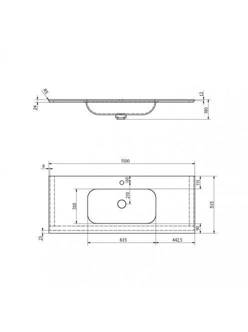 Sapho Aruba Rockstone beépíthető mosdó 150x51,5 cm matt fehé