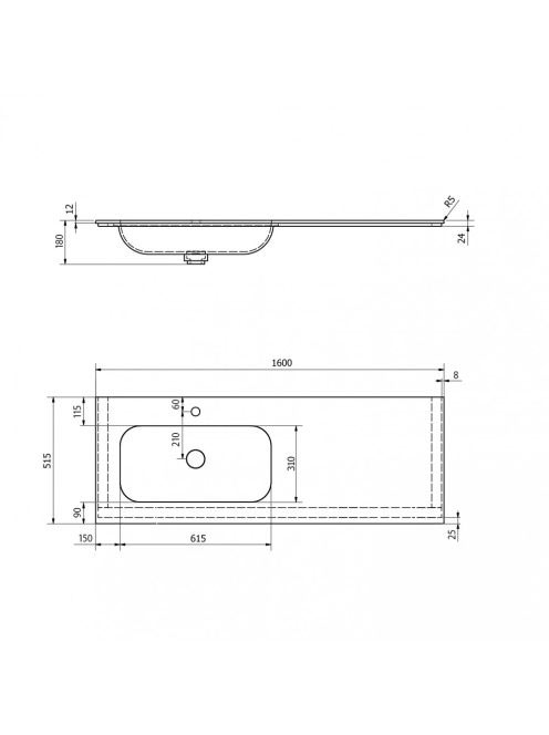 Sapho ARUBA Rockstone beépíthető mosdó 160x51,5 cm balos AR1