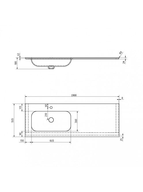 Sapho Aruba Rockstone beépíthető mosdó 190x51,5 cm balos AR1