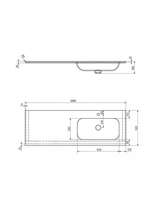 Sapho Aruba Rockstone beépíthető mosdó 200x51,5 cm jobbos AR