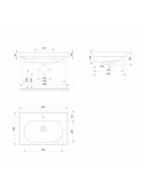 Sapho Brand kerámia mosdó túlfolyóval 60x45 cm, fehér TU0428