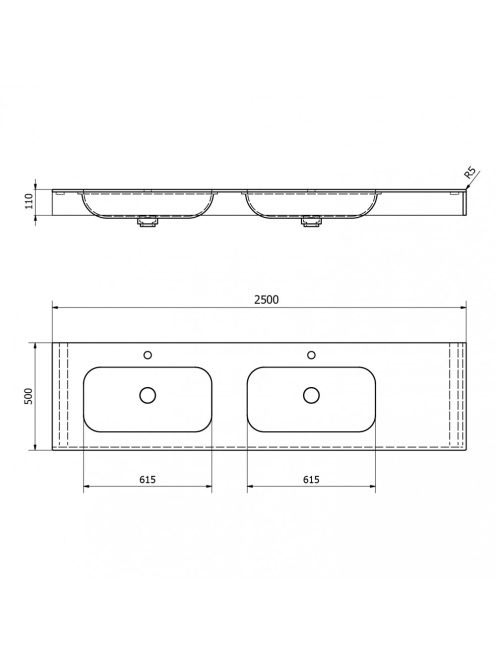 Sapho Emico Rockstone duplamosdó 250x50 cm, balos/matt fehér