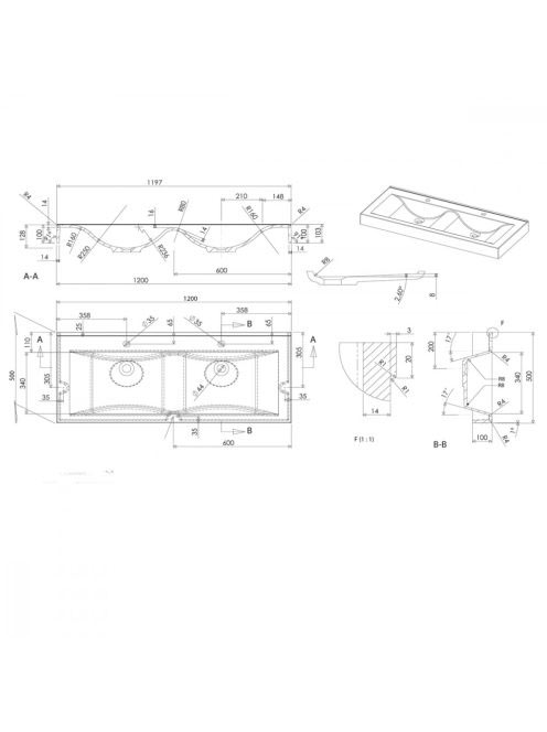 Sapho Flavia öntött márvány dupla mosdó, 120x50 cm, szöglete