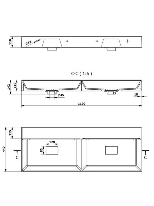 Sapho Godiva öntött márvány duplamosdó 119x44 cm, csapfurat