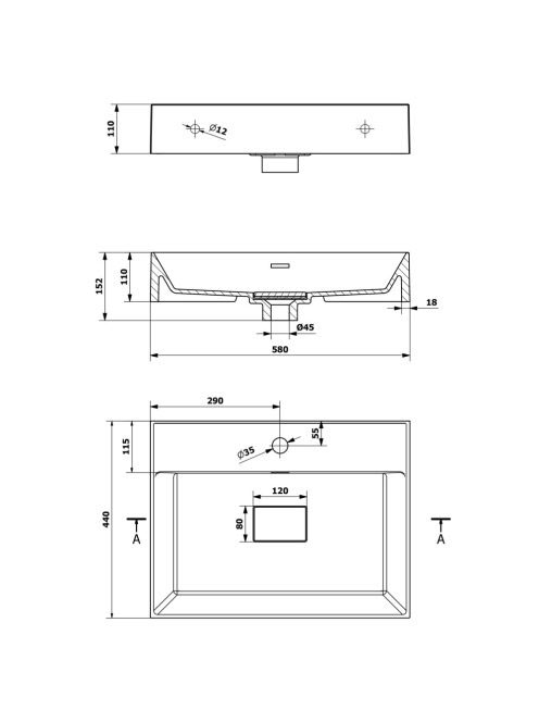 Sapho Godiva öntött márvány mosdó 58x44 cm, szögletes GU058