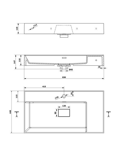 Sapho Godiva öntött márvány mosdó 83x44 cm, fehér GU083L - F