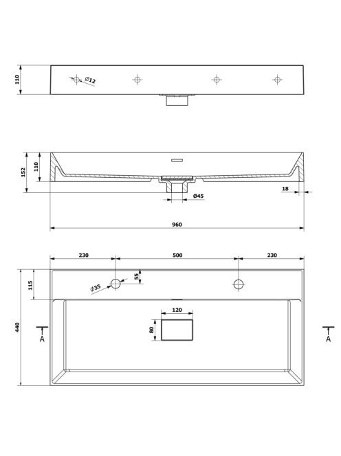 Sapho Godiva öntött márvány mosdó 96x44 cm, 2 csapfurattal,