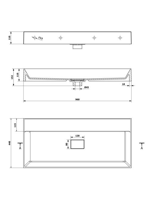 Sapho Godiva öntött márvány mosdó 96x44 cm, csapfurat és túl