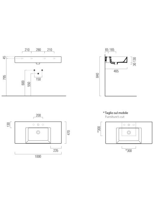 Sapho GSI KUBE X kerámiamosdó 100x47 cm túlfolyóval, fehér 9