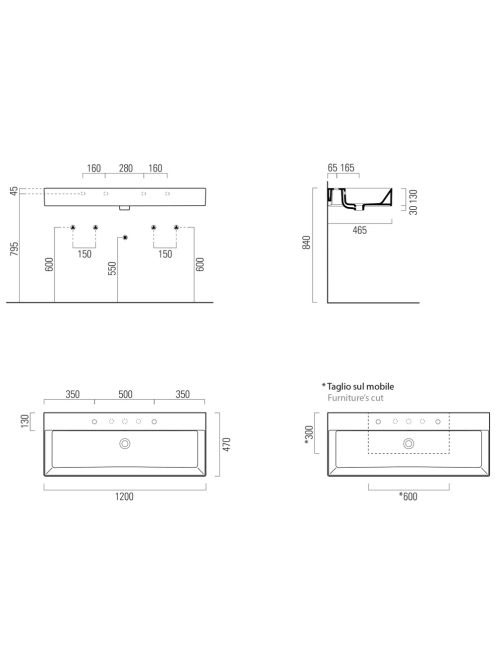 Sapho GSI KUBE X kerámiamosdó 2 furattal 120x47 ExtraGlaze®