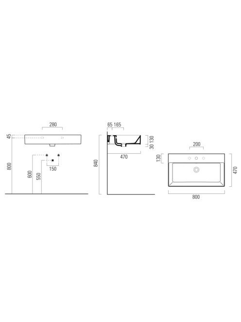 Sapho Gsi Kube X kerámiamosdó 80x47 cm csapfurattal és Extra