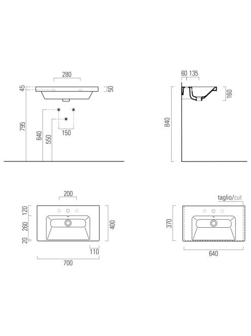 Sapho GSI NORM kerámiamosdó túlfolyóval 70x40 cm ExtraGlaze