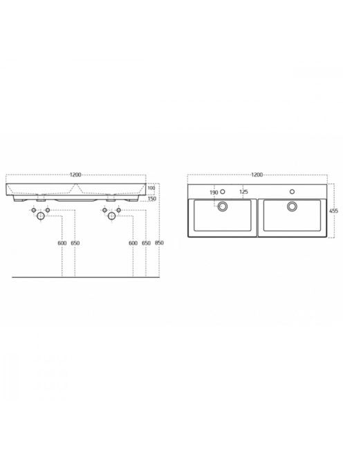 Sapho Kare dupla mosdó 120x46 cm, fehér 17120 - Fürdőszoba -