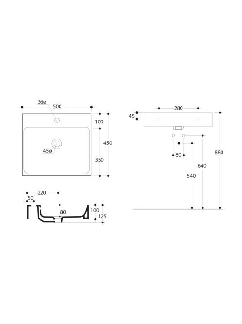 Sapho Kerasan Cento kerámia mosdó 50x45 cm, fehér 353001 - F
