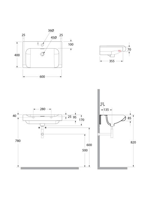 Sapho Kerasan Inka kerámia mosdó 60x40 cm, fehér 341101 - Fü