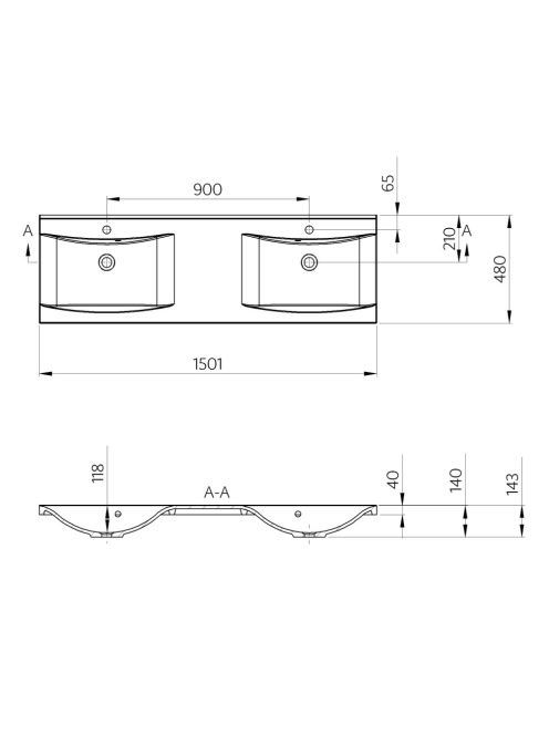Sapho Luciola öntöttmárvány duplamosdó 150x48 cm túlfolyóval
