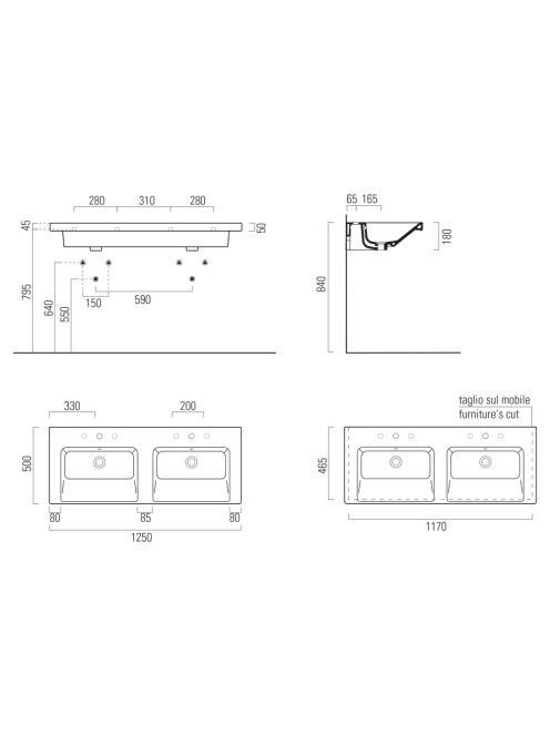Sapho Norm kerámia duplamosdó 125x50 cm, ExtraGlaze, 8627111